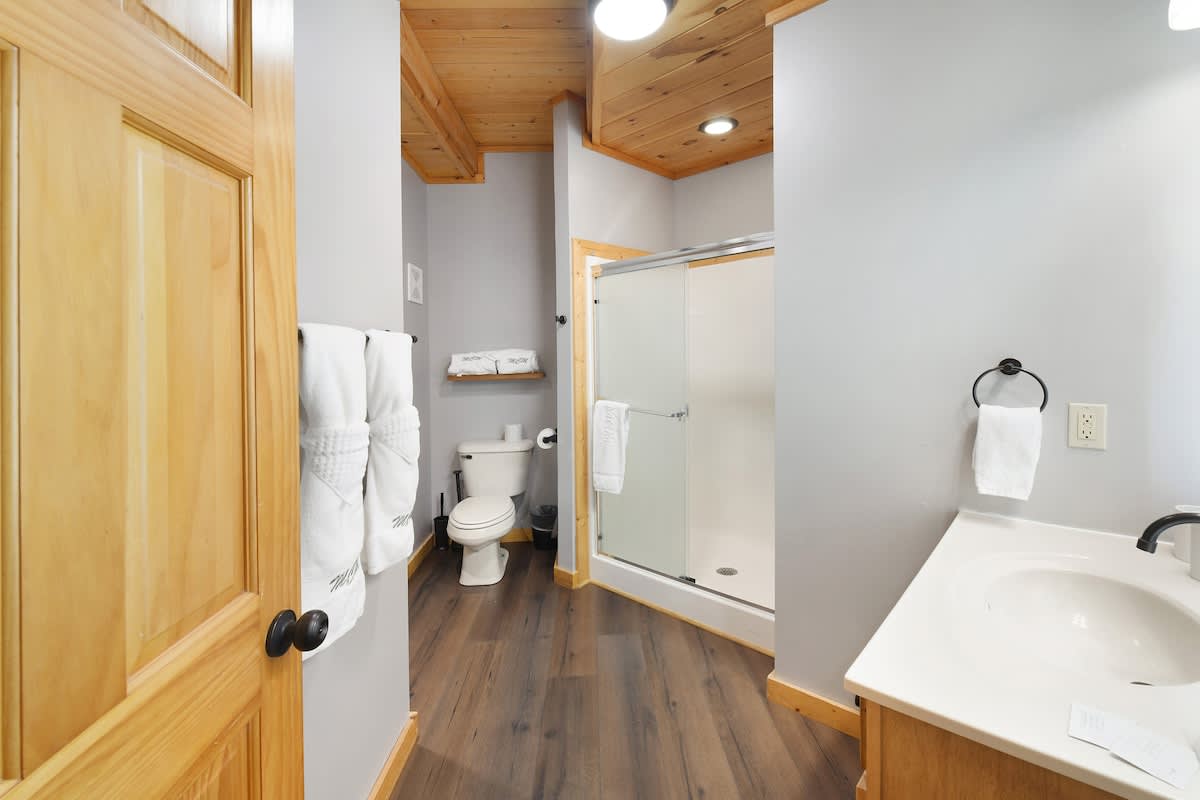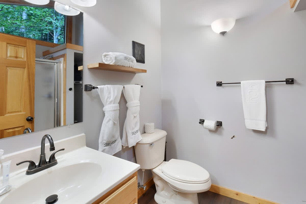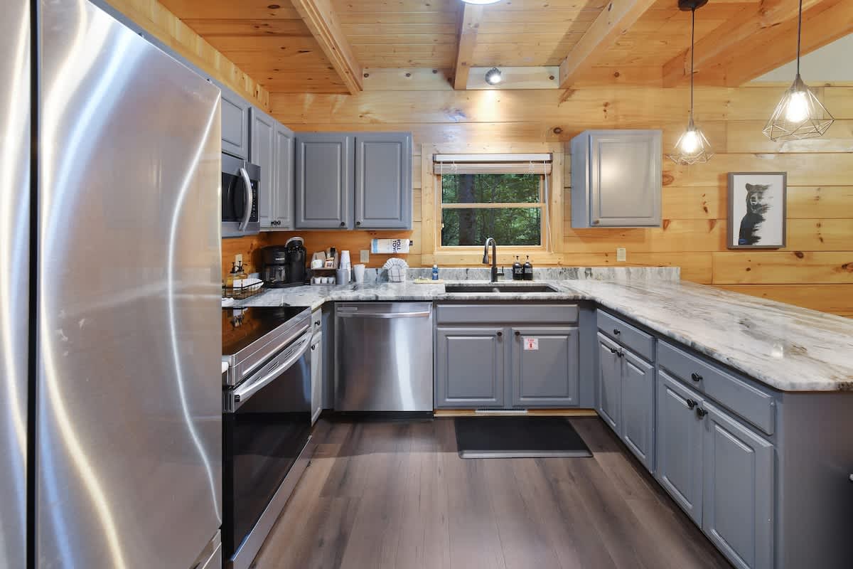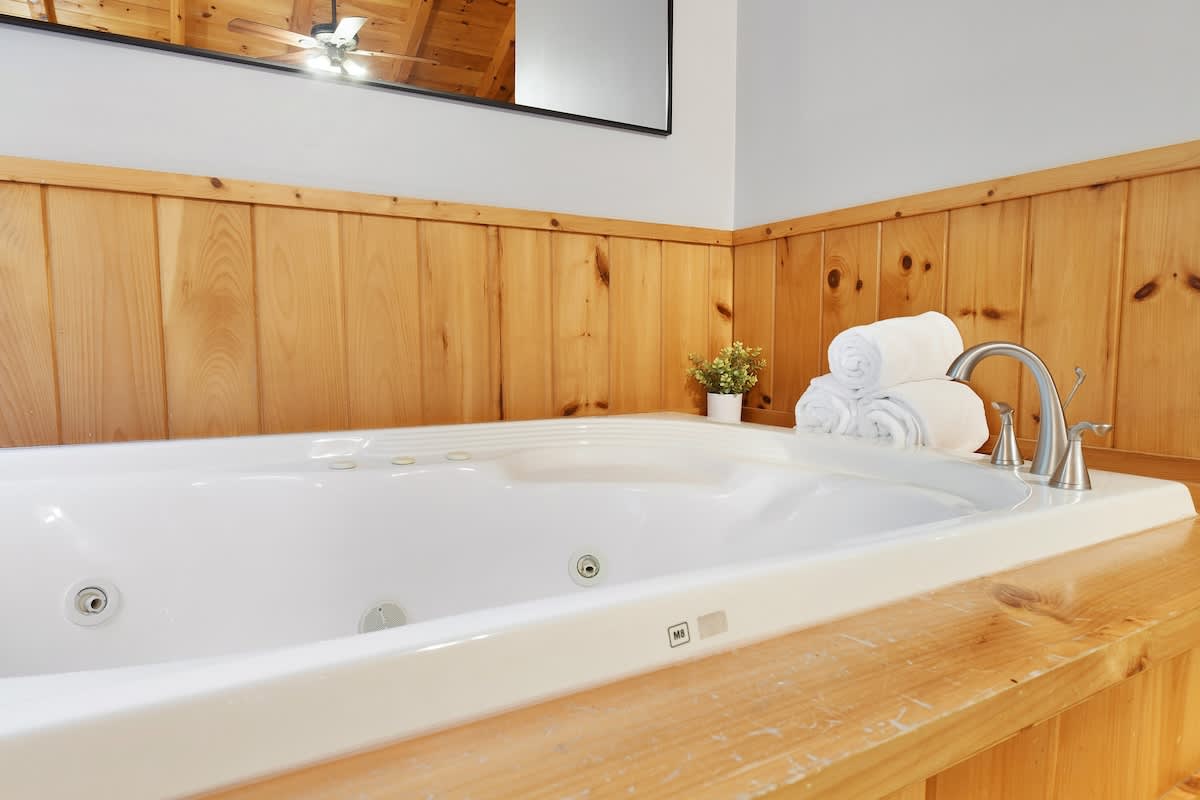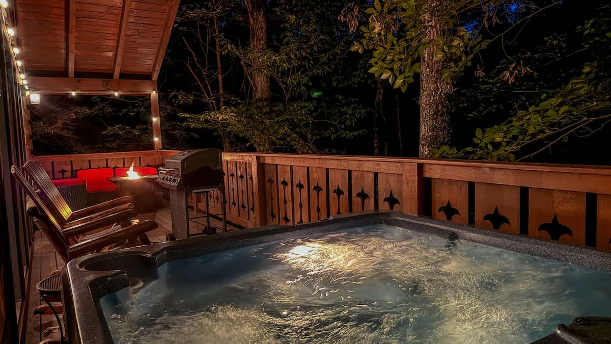 Welcome to Bear Bottom Cabin, your perfect getaway in Gatlinburg! This cozy retreat features a luxurious king bedroom with an ensuite bathroom and a relaxing Jacuzzi tub. Unwind by the electric fireplace or enjoy your favorite shows on the Roku TV. Upstairs, the loft area boasts a queen-over-queen bunk bed with its own full bathroom. Each bunk features a Roku TV equipped with headphone jacks for a private viewing experience. The loft also features an arcade gaming machine for some fun family competition! The spacious living room invites you to gather with loved ones, featuring another electric fireplace, a sleeper sofa, a smart TV, and ample seating for everyone. Enjoy meals at the dining table that seats 8, which cleverly converts into a ping pong and pool table for added entertainment. Plus, there’s an arcade cabinet loaded with classic games for nostalgic fun. The fully stocked kitchen makes meal prep a breeze, and the laundry room just off the kitchen includes a washer and dryer for your convenience. Step outside onto the private balcony, where you’ll find a cozy couch around a fire table and a hot tub with stunning forest views, perfect for relaxation after a day of adventure. 🛌 Sleeping Spaces 🛌 ✔️Bedroom 1 - 1 King Bed, Streaming TV, jetted tub, ensuite bathroom, electric fireplace (2 Guests) ✔️Loft - 1 Queen over Queen bunk bed, 2 streaming TV's, ensuite bathroom (4 Guests) ✔️Living Room - Pull out Queen sofa bed (2 Guests) 🎮 Entertainment 👾 ✔️Private Hot Tub ✔️Playstation 5 ✔️Mortal Kombat Arcade ✔️Multicade Arcade System ✔️Pool Table ✔️Ping Pong Table ✔️Board Games ✔️Puzzles ✔️5 Streaming TV's (Living Room TV has cable TV service) 🥩 Cooking Spaces 🌭 ✔️Fully stocked kitchen ✔️Coffee - Dual pods and drip style coffee maker ✔️Gas Grill ✔️Charcoal Grill ⛰️ Location 🌲 ✔️Located in Gatlinburg, just 1/2 mile to The Parkway and only 3 miles to Downtown Gatlinburg! ✔️Located just 7 miles to The Island in Pigeon Forge 🚗 Parking & Driving 🚙 ✔️2 Vehicles fit best but 4 can fit if you use the incline part of the driveway. No trailers allowed as it's challenging to navigate the road with a trailer. The last 1/2 mile drive to this cabin is on a winding road with some steep roadways. 🎖️ Military, Veteran, Police & Firefighter Discount 🚔 We are proud to offer all Current Military, Veterans, Police & Firefighters a 5% discount. In order to receive this discount, you must make your reservation first then send us a message in Air BnB with a copy of your proof of service. The name on the reservation and payment must match the name on the proof of service. We will then refund 5% of the accommodation back to you in the resolution center the day after your check-in Property ownership Info: Douglas Foyt