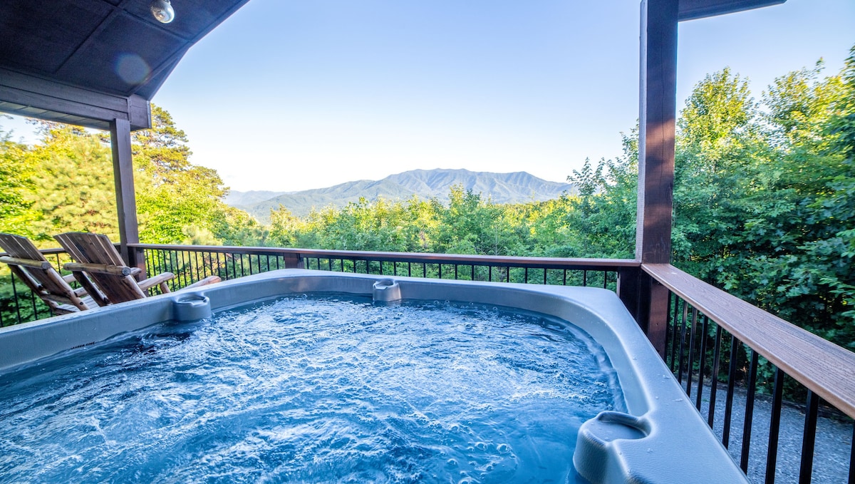 Welcome to the Majestic Mountain View! This beautiful cabin in the Smoky Mountains is located in Gatlinburg, Tennessee and features incredible views of the iconic Mt. Leconte! Situated on top of a private hill with seclusion and privacy, views of Mt. LeConte can be seen while relaxing in your private hot tub or in either of the indoor soaking tubs. Outdoor enthusiasts will enjoy the large garden yard with fire pit and seating space. Best of all are those AMAZING views during all 4 seasons!
